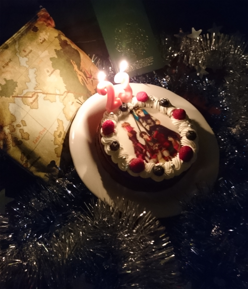 Memorial 幻水1 23周年祝 2018/12/15 幻水1、23周年おめでとう! 幻水おめでとう!誕生してくれてありがとう! うっかり去年と同じケーキ屋さんに頼んだので、去年と似たような図になりました。 このケーキ屋さん美味しいのでつい…。
