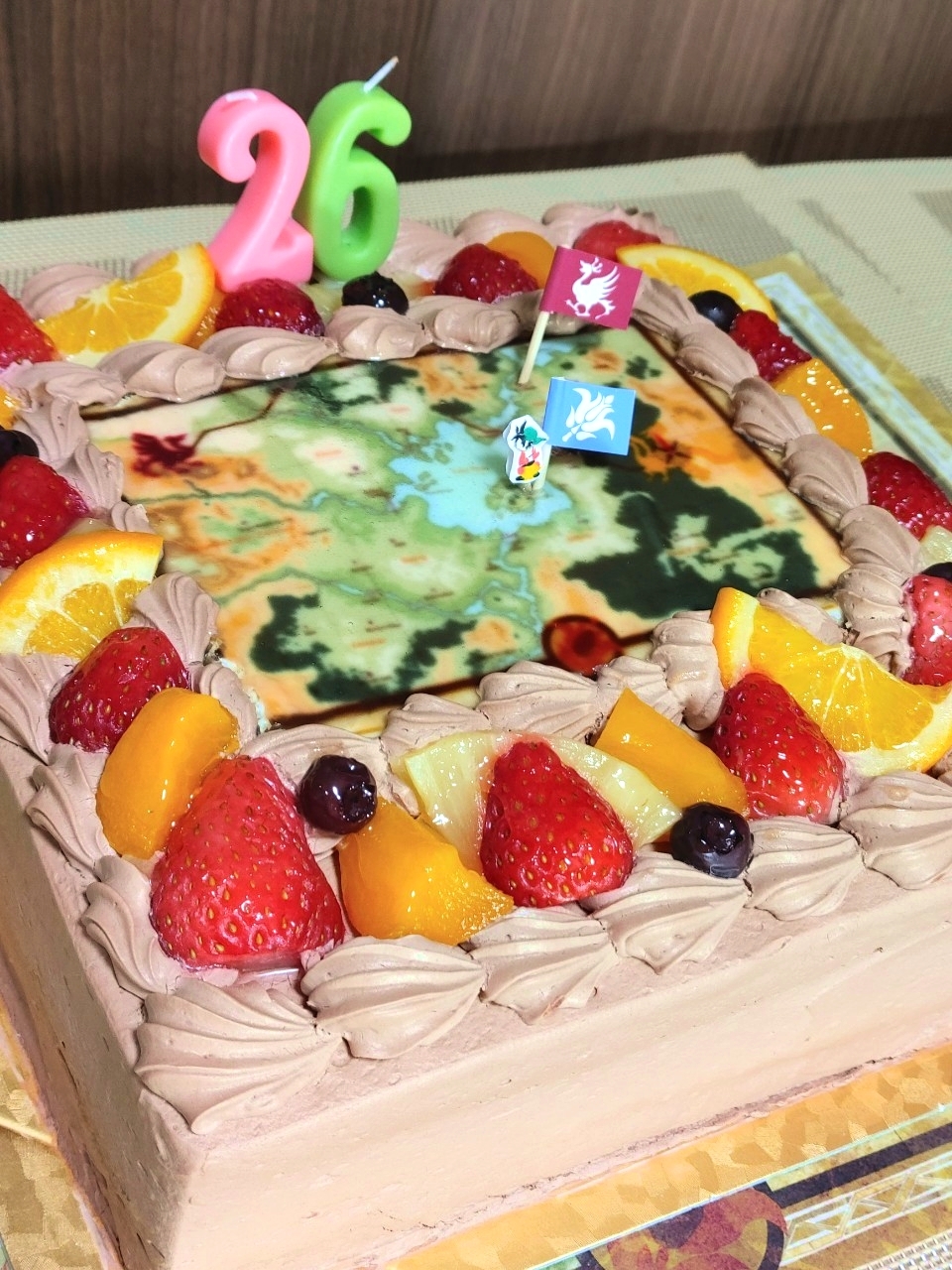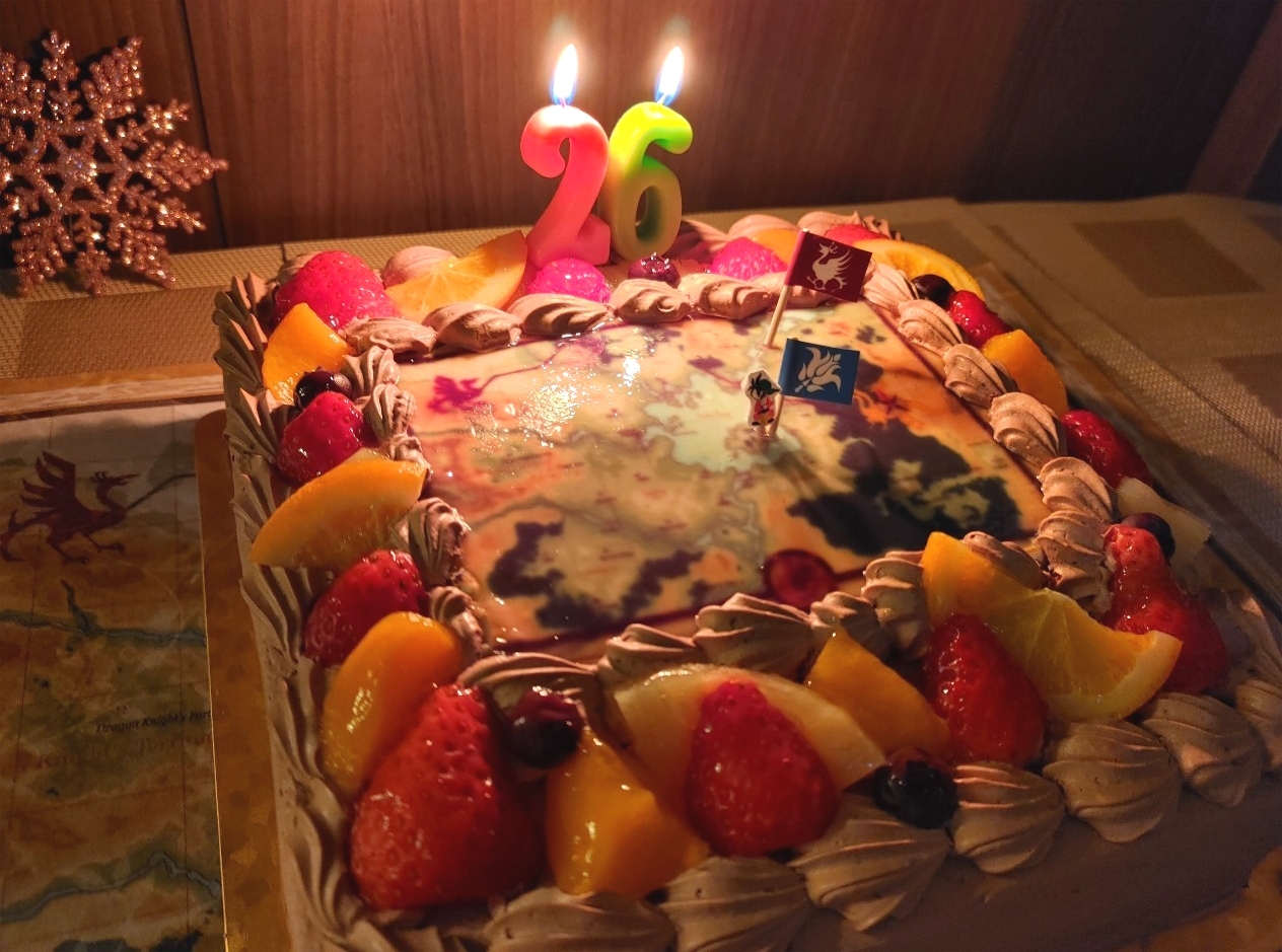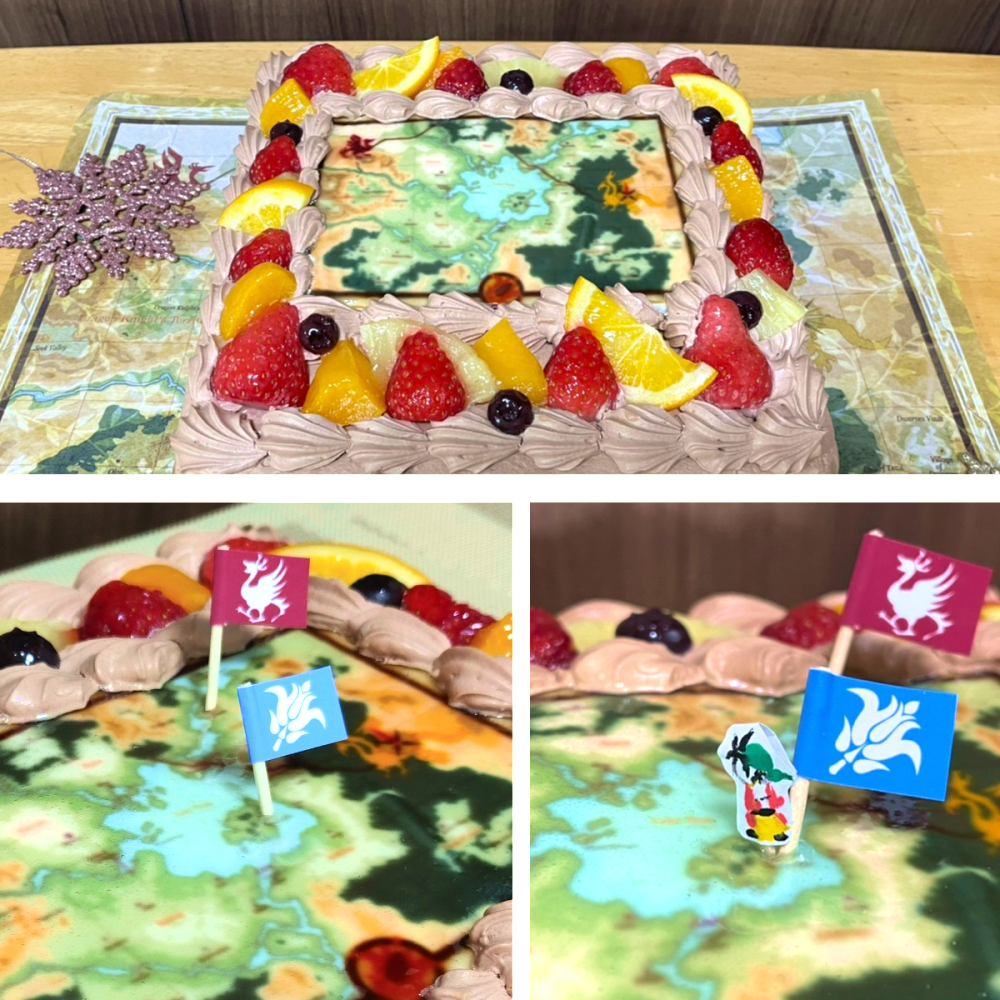 Memorial 幻水1 26周年祝 2021/12/15 幻水1、26周年おめでとう! 幻水26周年おめでとうございます!!! 今年は水滸図ケーキでお祝いしました。 大草原の小さなぼっちゃんを添えて。 みんなで美味しくいただきました~! われらにしょうりを!!
