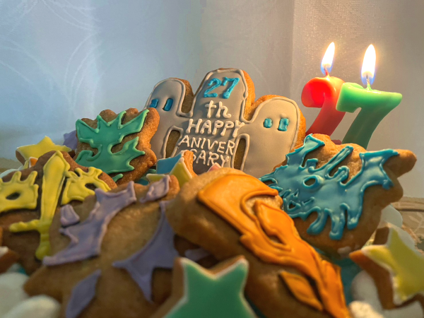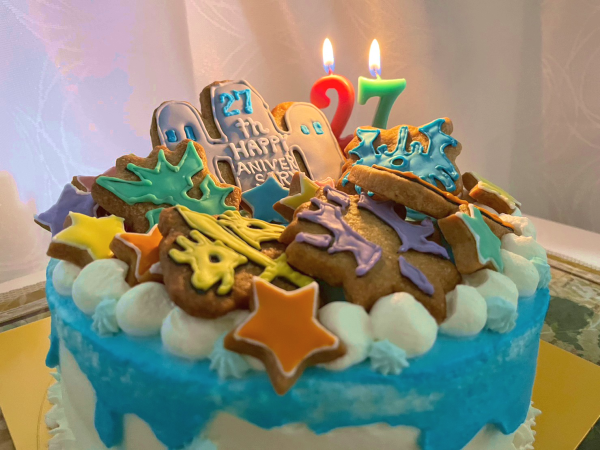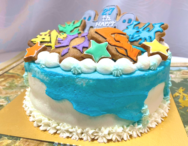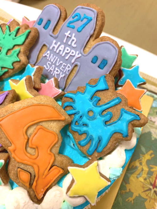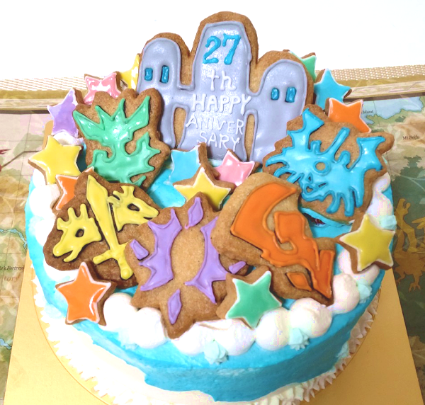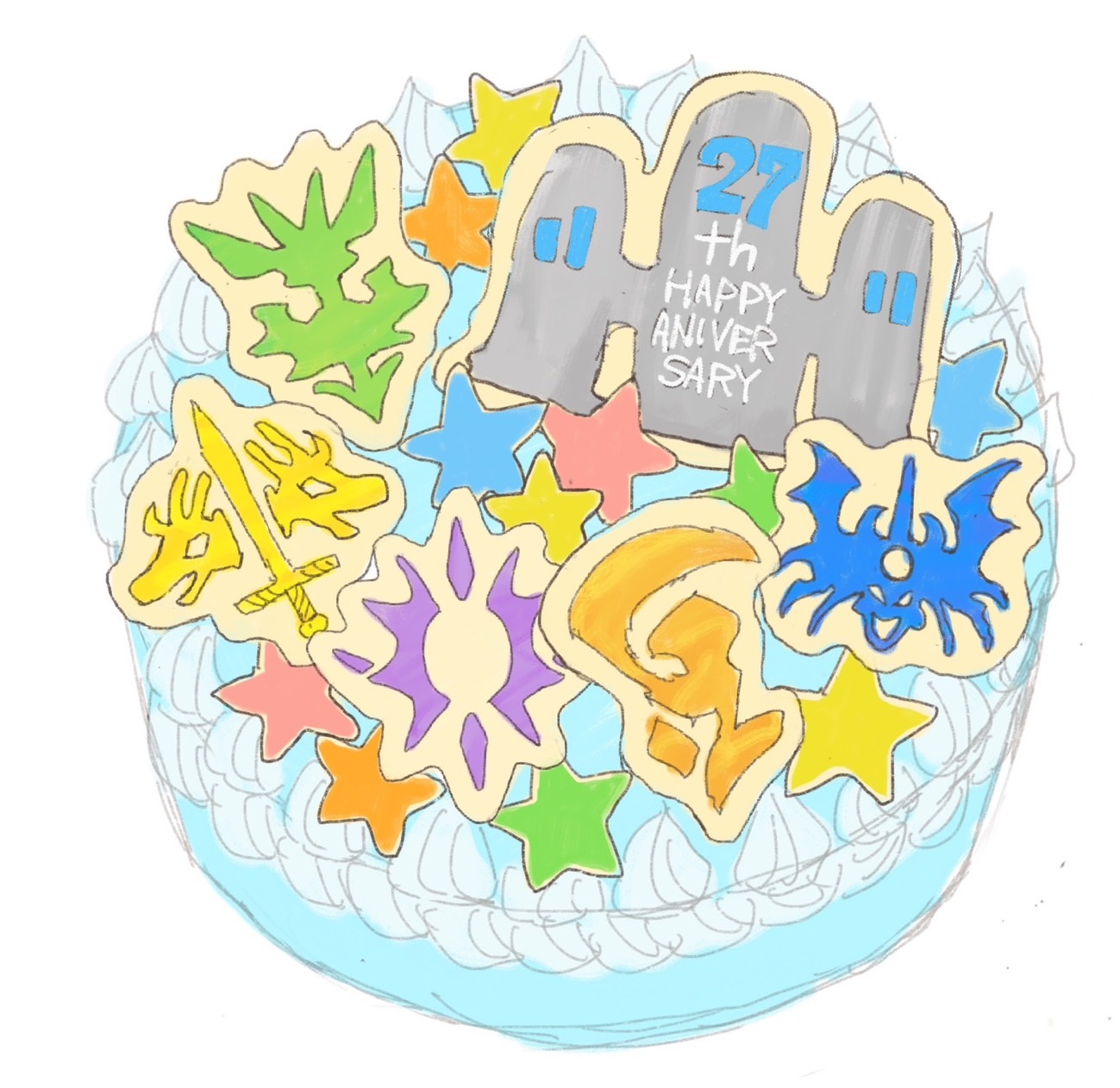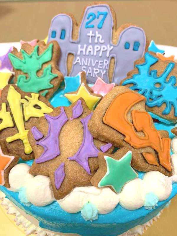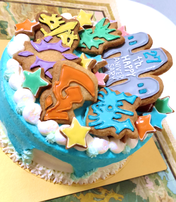 27といえば、真の紋章の数。というわけで、幻水1に出てくる真の紋章クッキーを乗せたケーキでお祝いです!
