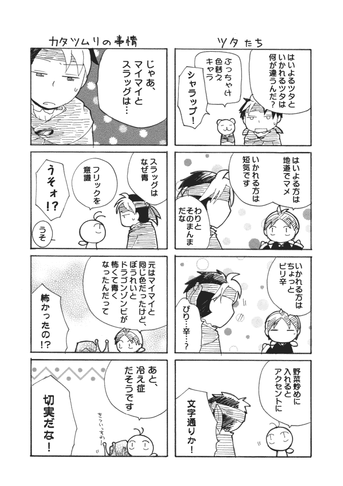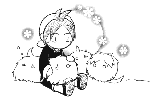 モンスター小ネタ無配本でした。久々に描いた我が家の坊ちゃんは、やはり小さくて丸い…。