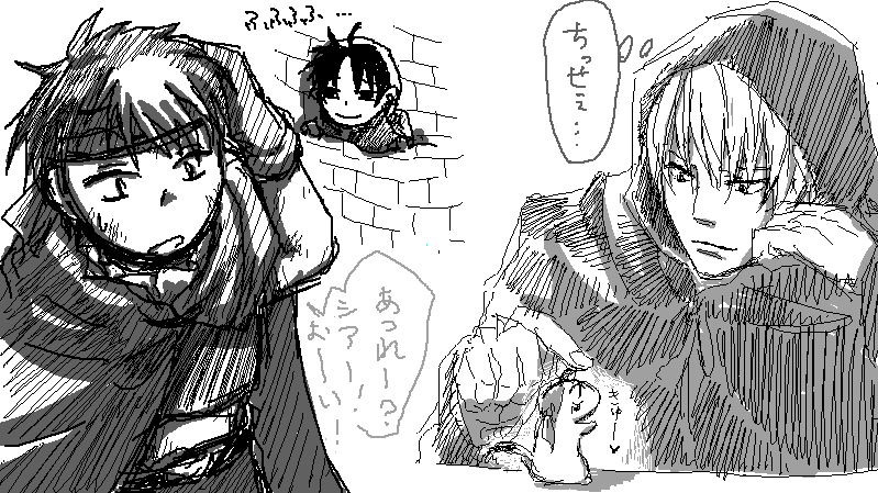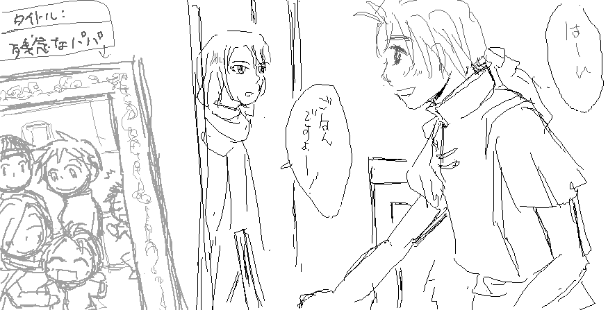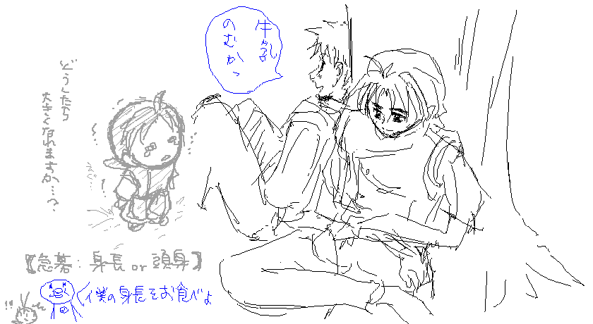 やはり坊を描こうとした一枚なわけですが、あまりの頭身の違いに涙目な東山坊。