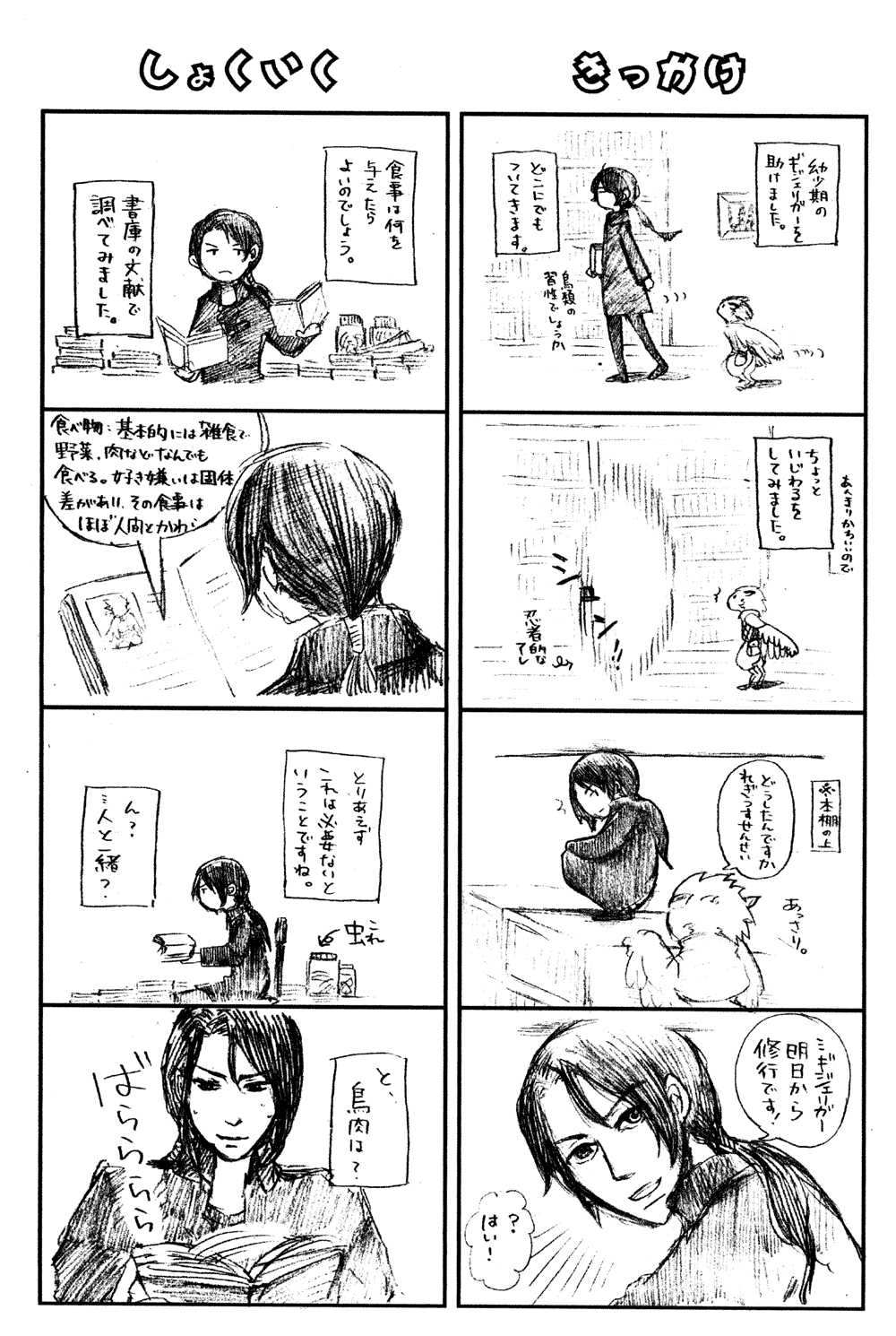右:なぜか巨大もさもさの上でご飯中のシグレとレーヴン。