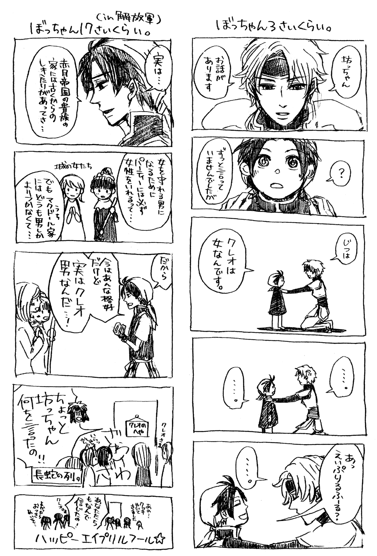 紡時プレイ直後の落書きたちと、エイプリルフールネタな幻水1漫画でした。