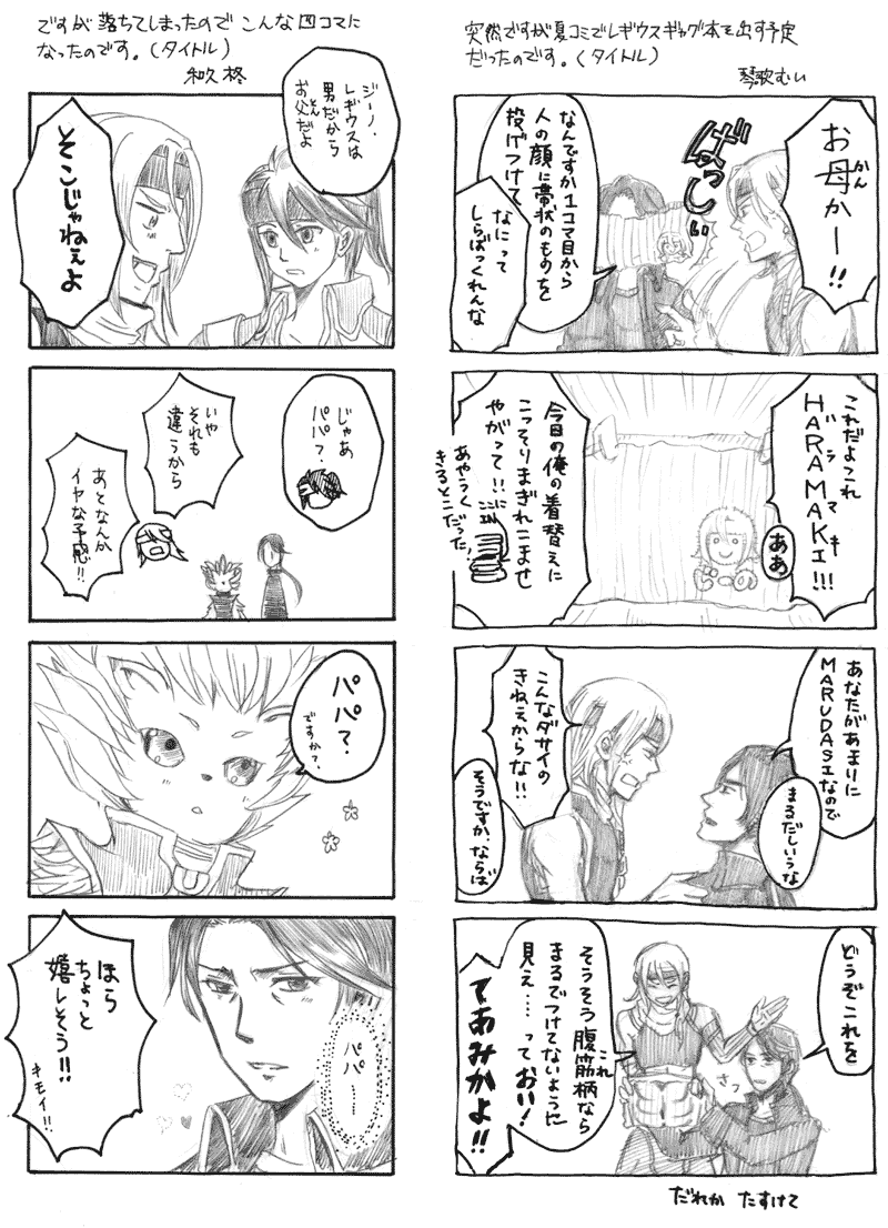切なさに耐えきれない!と和久がグレミオを描き足し、ならばギャグ方向にもっていこうと東山が見切れたテオパパを描き足し、