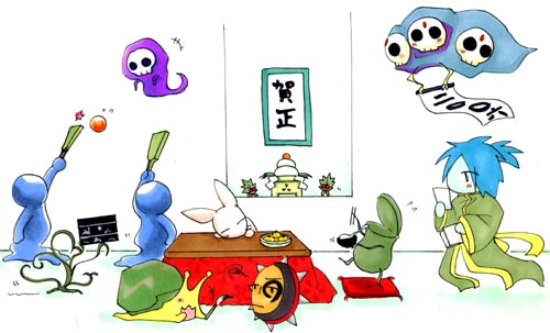 友人に「モンスターで年賀絵なんて見たことねえよ!」と言われた代物。してやったり。